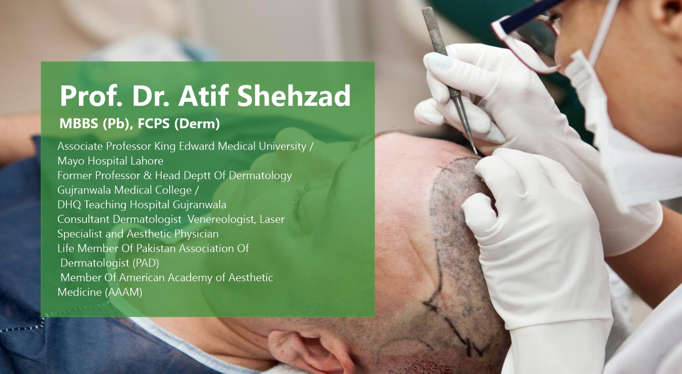 Prof. Dr. Atif Shehzad is one of the top most certified Consultant Dermatologist, Venereologist, Laser Specialist and Aesthetic Physician in Lahore, having the degrees of MBBS(Pb), FCPS(Derm).